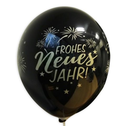 Schwarzer Ballon mit silbernem Aufdruck "Feuerwerk", rundum.