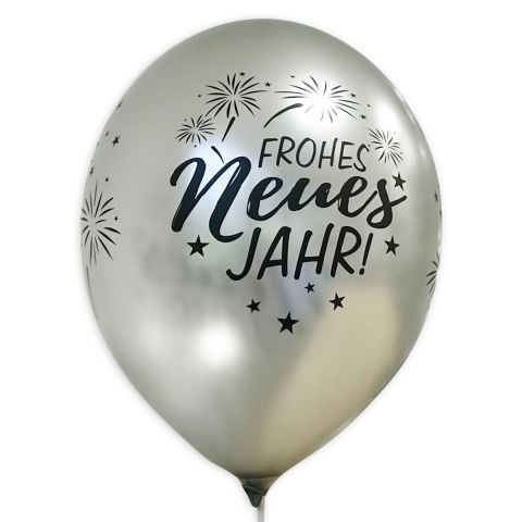 Silberne Ballons mit shcwarzem Feuerwerk-Aufdruck, rundum.